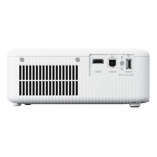 PRINCIPALES CARACTÉRISTIQUES Vidéoprojecteur polyvalent à technologie 3LCD Résolution : WXGA (1280 x 800 pixels) Luminosité : 3000 Lumens Projection d'une image jusqu'à 378 pouces Lampe avec durée de vie jusqu'à 12 000 heures (mode Eco) Zoom numérique 1.35x, correction keystone H/V (manuel +/-30°), Quick Corner 1x HDMI 1.4 + 1x USB-A 2.0 + 1x USB-B 2.0 (service) Projection sans fil en ajoutant le module ELPAP11 optionnel Haut-parleur 5 Watts intégré